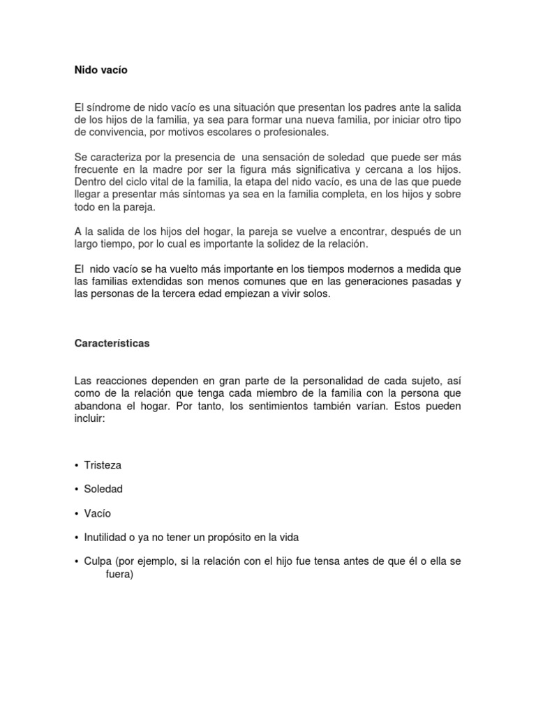 Dinamica Nido Vacio Cuando Los Hijos Se Van Y Dejan Solos A Los Padres Studocu